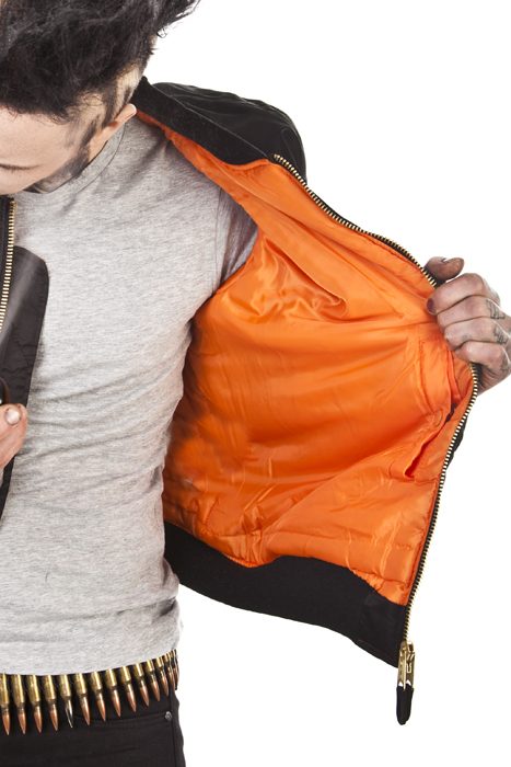 Bomber Jacket Green är en skimrande grön Bombarjacka från Banned Apperale med orange foder. Jackan är Unisex, den har två ytterfickor, en ficka på armen samt två stycken innerfickor.