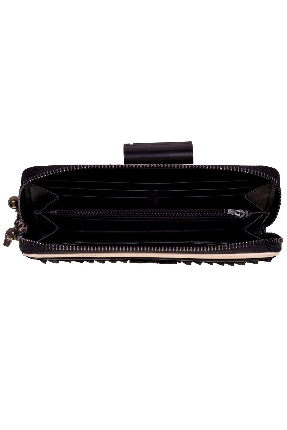 Tillverkad av 100 % svart PVC. Det finns fack för bank- och kreditkort och separata fack för sedlar. För säker förvaring av mynt är mittfacket med dragkedja. Som en extra detalj och att säkerställa att innehållet hålls säkert har plånboken en all around dragkedja. Det är en plånbok du inte vill vara utan.