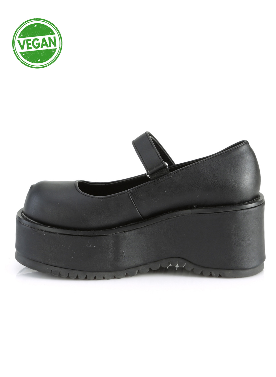 Demonia Dollie-01 Black är vegan Mary Jane skor från Demonia. 8,3 cm plattform med ankelrem.