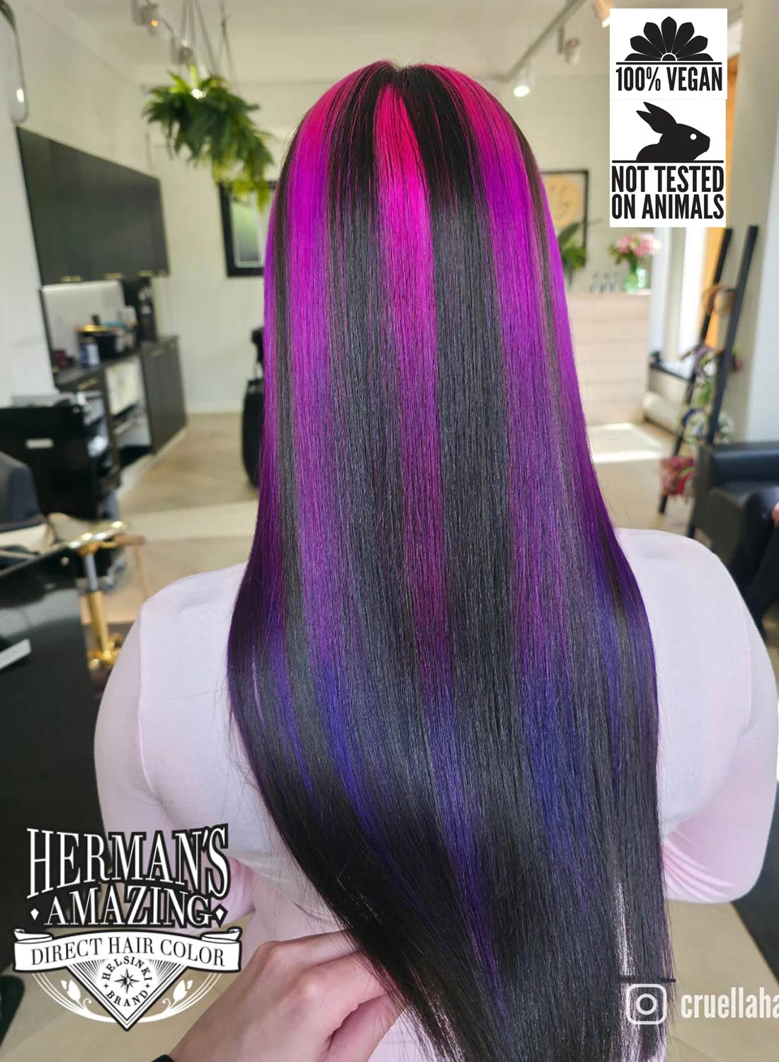 Denna färg tar ditt hår till nästa nivå, levande, intensivt och oemotståndligt silke och djup ton i ditt hår! Hur många burkar du behöver till ditt hår beror helt på hur mycket, och hur tjockt hår du har. Har du mycket hår, tjockt och långt så kanske du behöver 2 burkar. Blir det hårfärg över går det bra att spara den i kylskåpet till nästa färgning eller om du behöver fylla på. Hermans hårfärg är inte testad på djur och är helt vegansk.