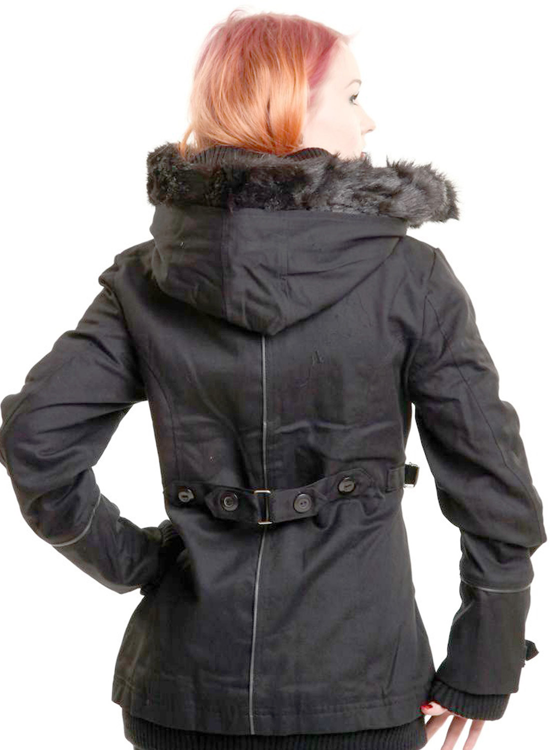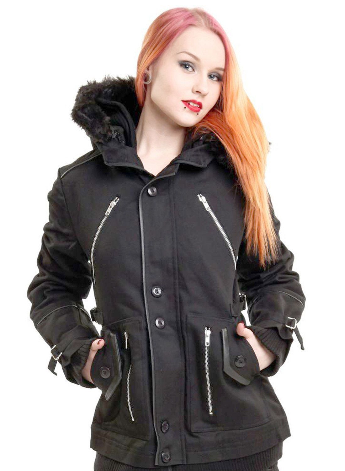 En helt underbart jacka för den svenska vintern som passar perfekt i en rocker eller gothgarderob, till vardag användning .