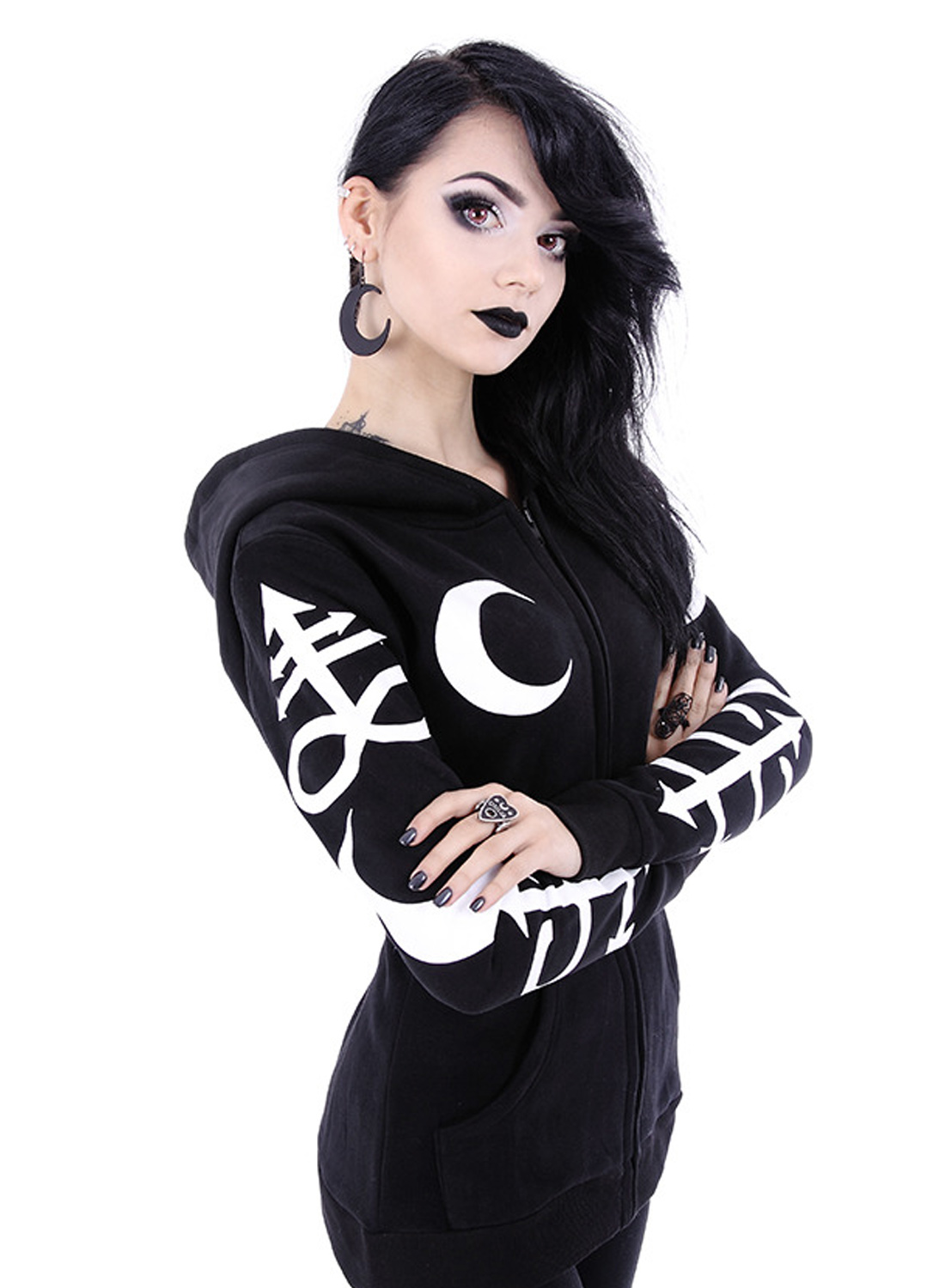 Restyle Occult Symbols Hoodie är en snygg, gotisk, figursydd huvtröja från Restyle. Överdimensionerad huva med WITCHCRAFT-tryck på kanten. Ärmarna är täckta med stora alkemiska symboltryck. Den har dragkedja och två fickor och skapar omedelbar dramatik till dina dagliga ritualer. Skönare hoodie än denna hittar du inte!