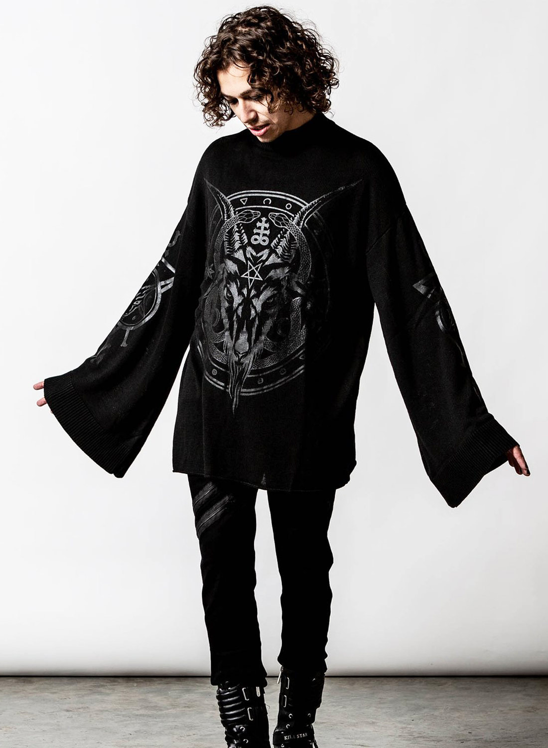 Se söt som fan i den stickade tröjan ‘Revelation’; trollade tillverkad i ett supermjukt tyg för en smickrande men ändå bekväm passform. Har en rund halsringning, grafik tryck framtill och långa, vida ärmar – ingen detalj har sparats! Denna läskiga häftklammer är en dröm att styla och ser bra ut med alla dina favoritlookz! Purrrfect för en dag ute med din Coven eller picknick vid månen!