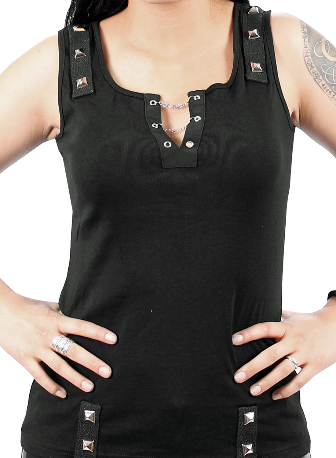 Rock On Top är en topp/ linne från Restless ‘N’ Wild, tillverkad i stretchigt mjuk tyg, med dekorativa öljetter, nitar,D-ringar och kedjur.