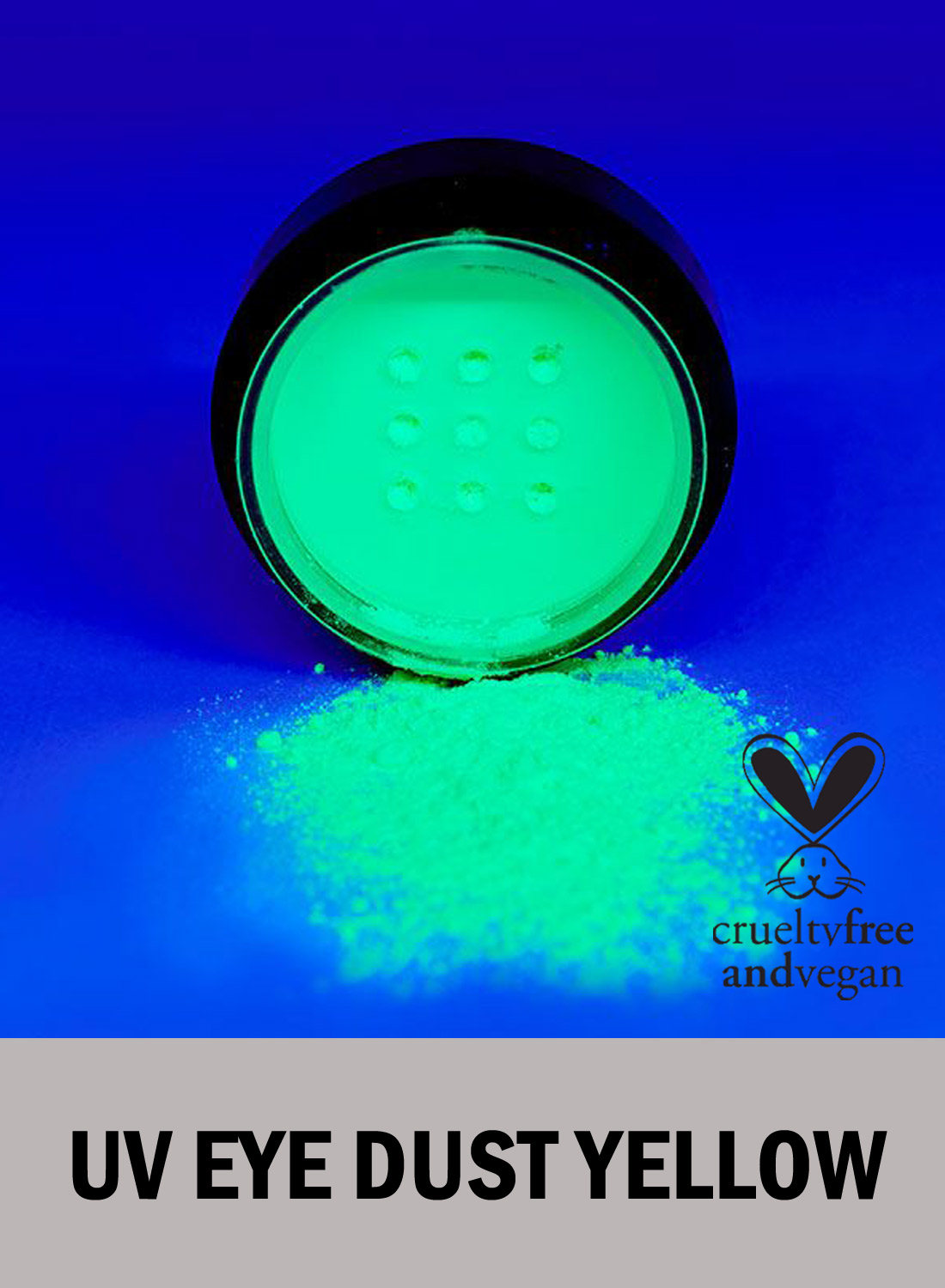 Hyperpigmenterat löst ögonskuggspuder Neonpigmenten reagerar och lyser under UV- ljus för att fluorescera med klar färg. Neon-ljuset är mycket markant och kommer göra så att du utmärker dig på klubben eller festivalen. De starka pigmentfärgerna kan användas för att färga, framhäva och lysa upp ögonen med djärva rika färger.